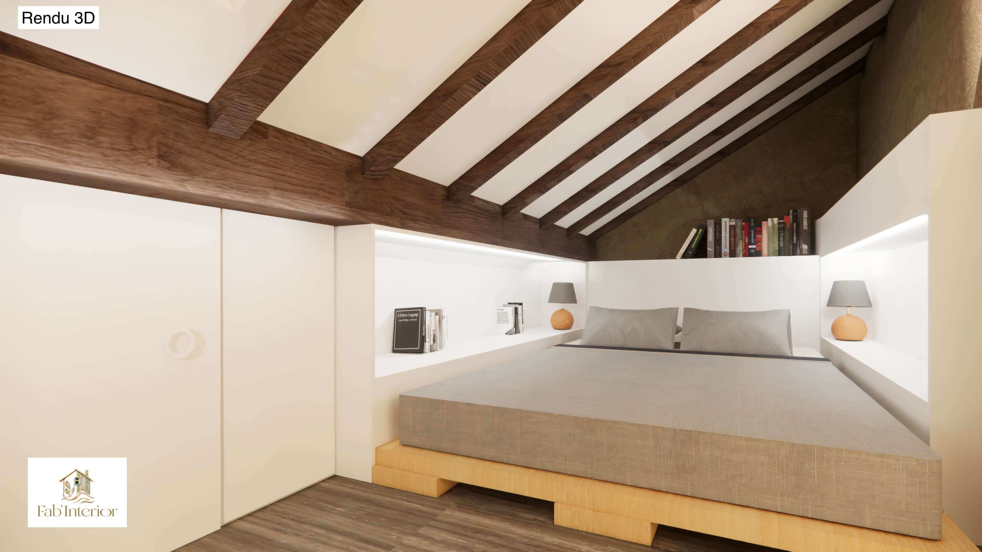 Les chambres et la salle de bain ont été repensées avec simplicité et cohérence, dans la continuité du rez-de-chaussée : sol en bois, finitions minérales, rangements sur mesure et atmosphère calme, propice au repos.